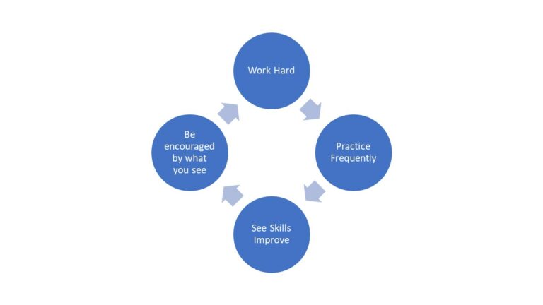 The key to the cycle is getting started with developing a culture of working hard. Oftentimes, coaches do not want to challenge kids at a young age for fear of driving them away from the sport. I believe that coaches want kids to improve; but fear pushing them. We also don’t practice enough. Let’s face it, most kids will not work on their game at home. Only a select few will practice on their own or with a parent. And if your team does not “Practice Frequently”, you slow down the process of having fun. Practicing hard once a week (which is what a lot of Rec teams do) will not generate the progress one seeks as quickly as practicing hard 3 or 4 days each week.